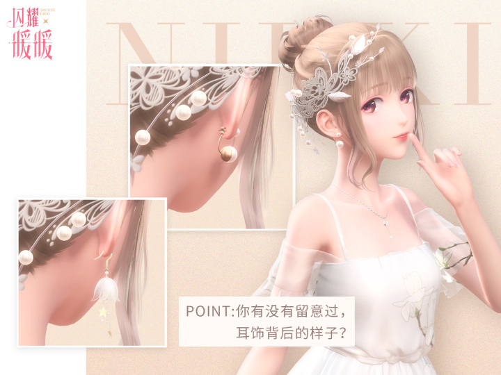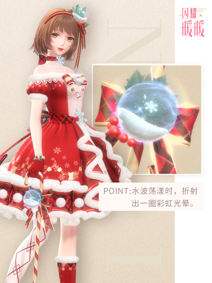 欢迎来到闪耀放大镜! 宅在家是不是有些无聊?在这里,阿闪将和你一起,放大那些藏在暖暖衣柜里的小彩蛋。 你注意到了吗?水波荡漾时,落雪的水晶球里,会折射出斑斓的彩虹光晕;为了不破坏发型,云端人民似乎发明了特殊的戴耳机方式呢。 还有跟随发型四处游走的小绒球们,俏皮可爱,要一起去捕捉他们吗?
