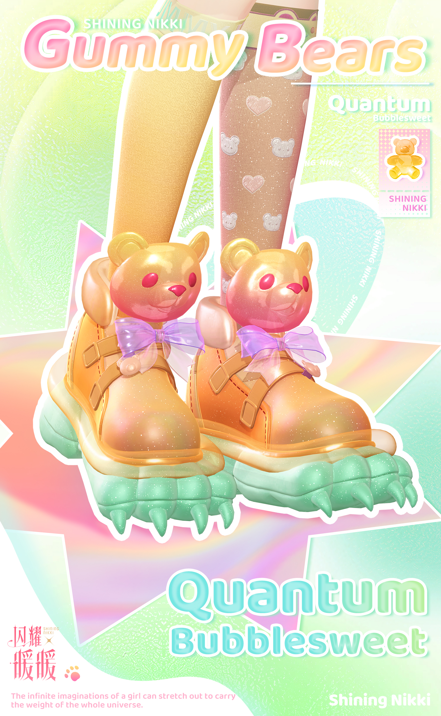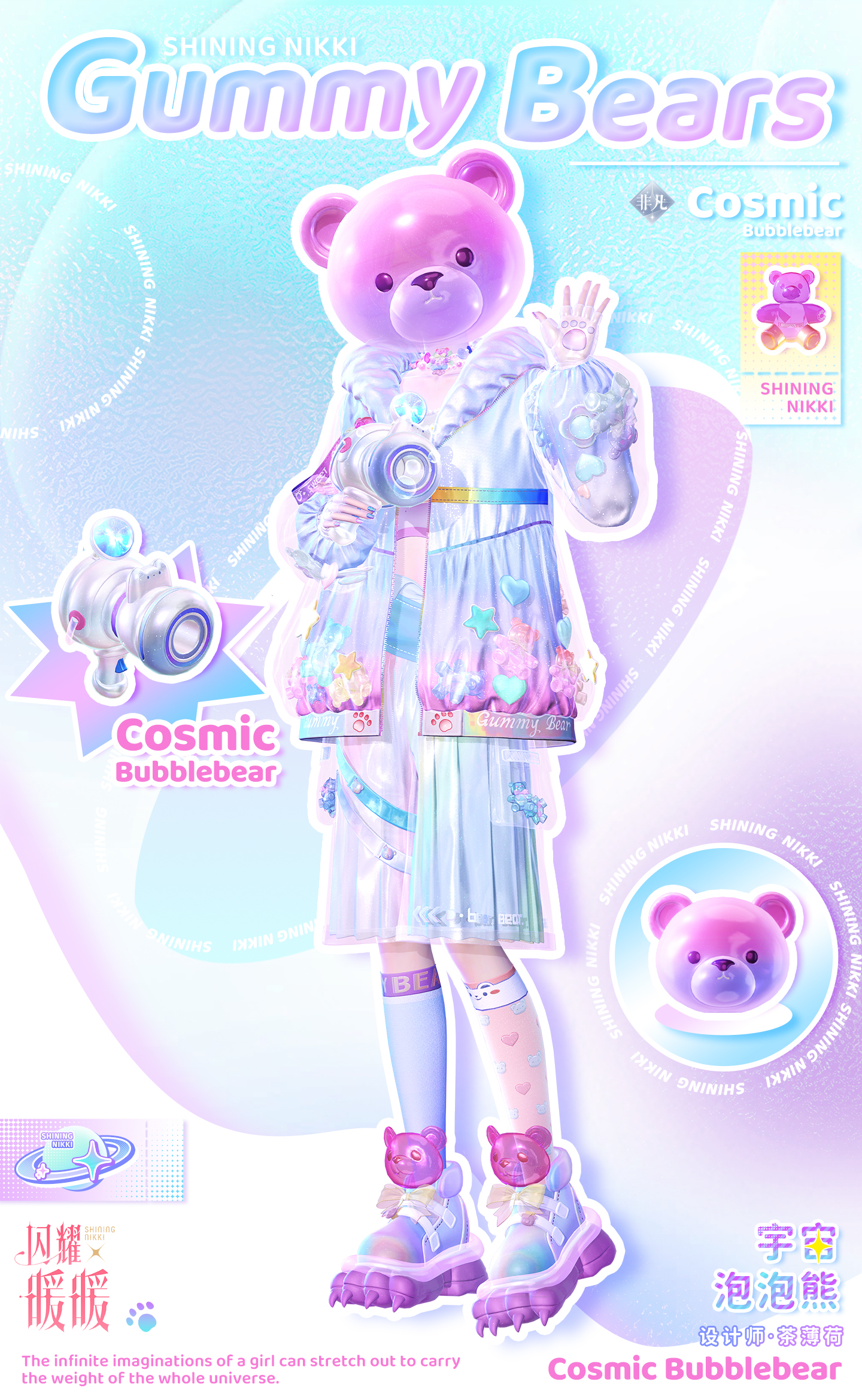 活动期间,参与限时感应及限时累充等任务,收集「小熊软糖」,即可解锁对应拼图,兑换非凡服饰【宇宙泡泡熊】【量子泡泡蜜】、穿搭模板【幻景畅游】、贴纸模板【熊熊乐园】、动作【远空呼唤】【祈望流光】及粉钻等丰厚奖励。