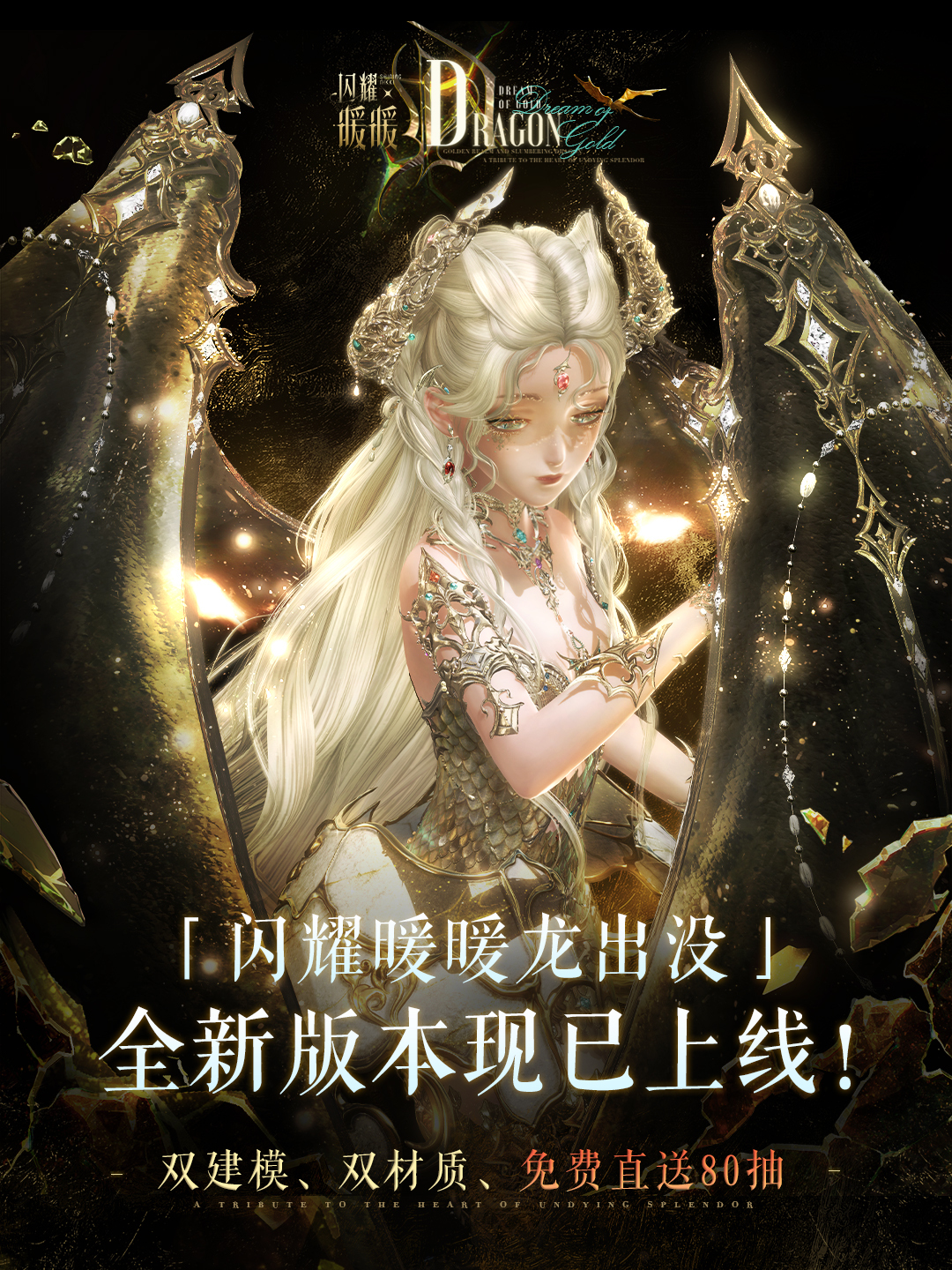 1.获得闪·熠套装【龙与金色梦乡】任意2个部件后,可解锁全新赠礼【眠龙的宝藏】,额外领取「龙晶之证」×10~