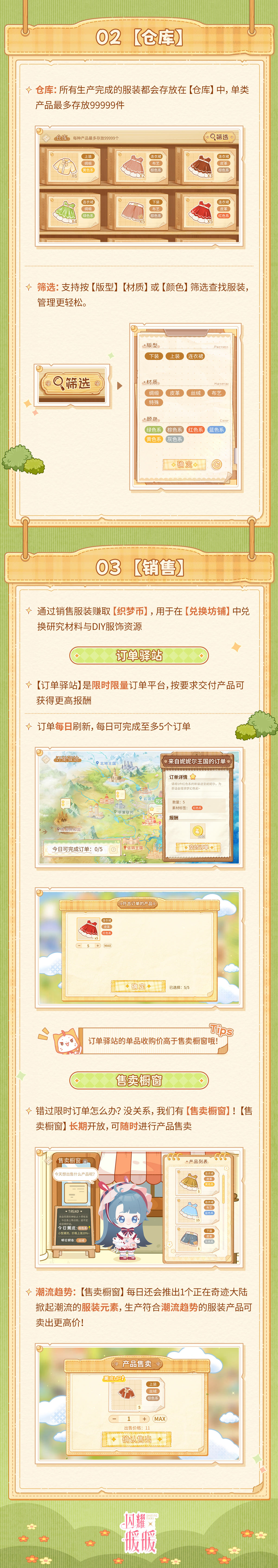 ②玩法将模拟从生产到销售品牌服装的全过程:生产服装→销售赚取收益→兑换资源→扩大生产。