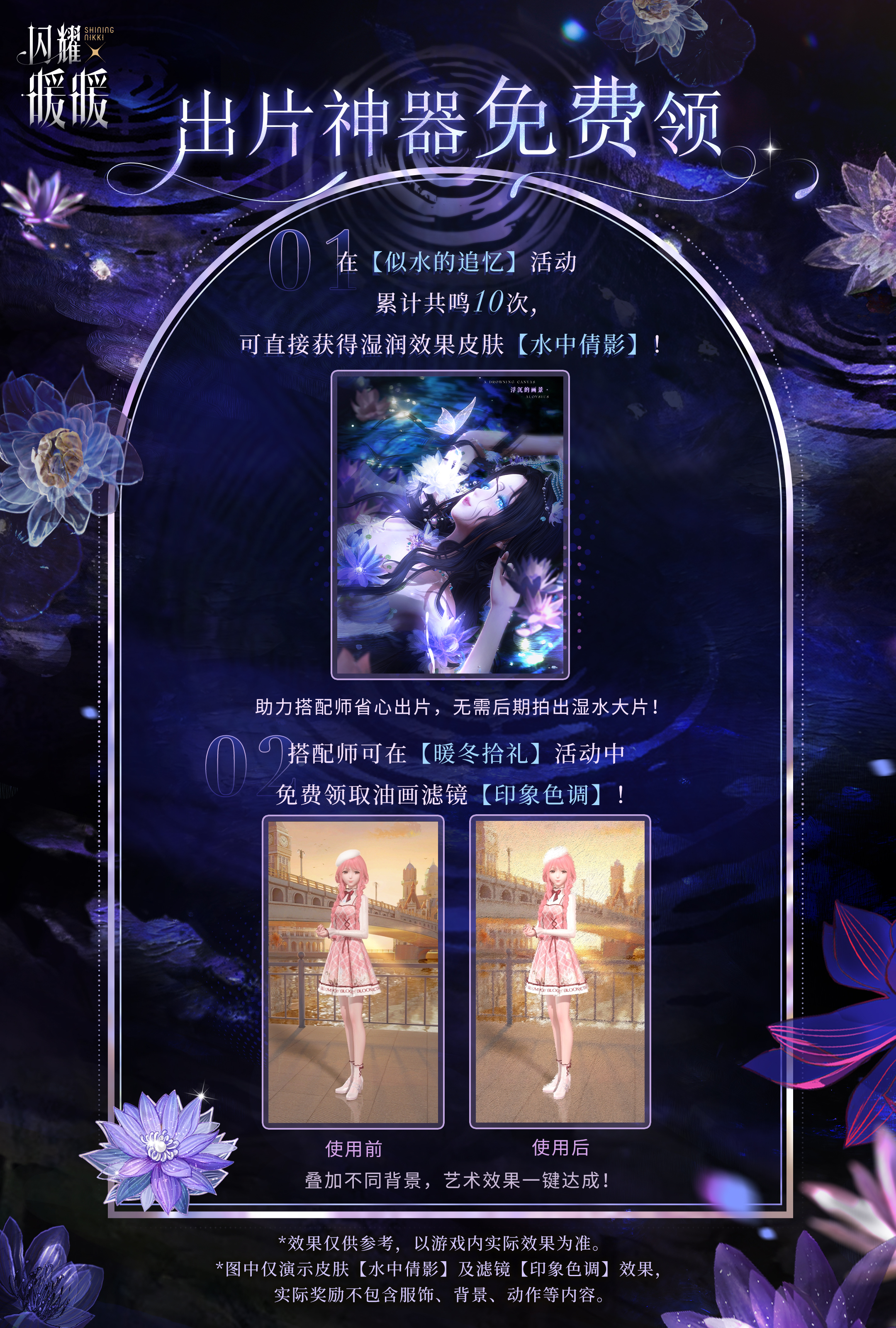 2.活动期间,可免费领取:活动共鸣道具「幽幽花息」*30、油画风滤镜,还可通过购买获得大量「幽幽花息」。