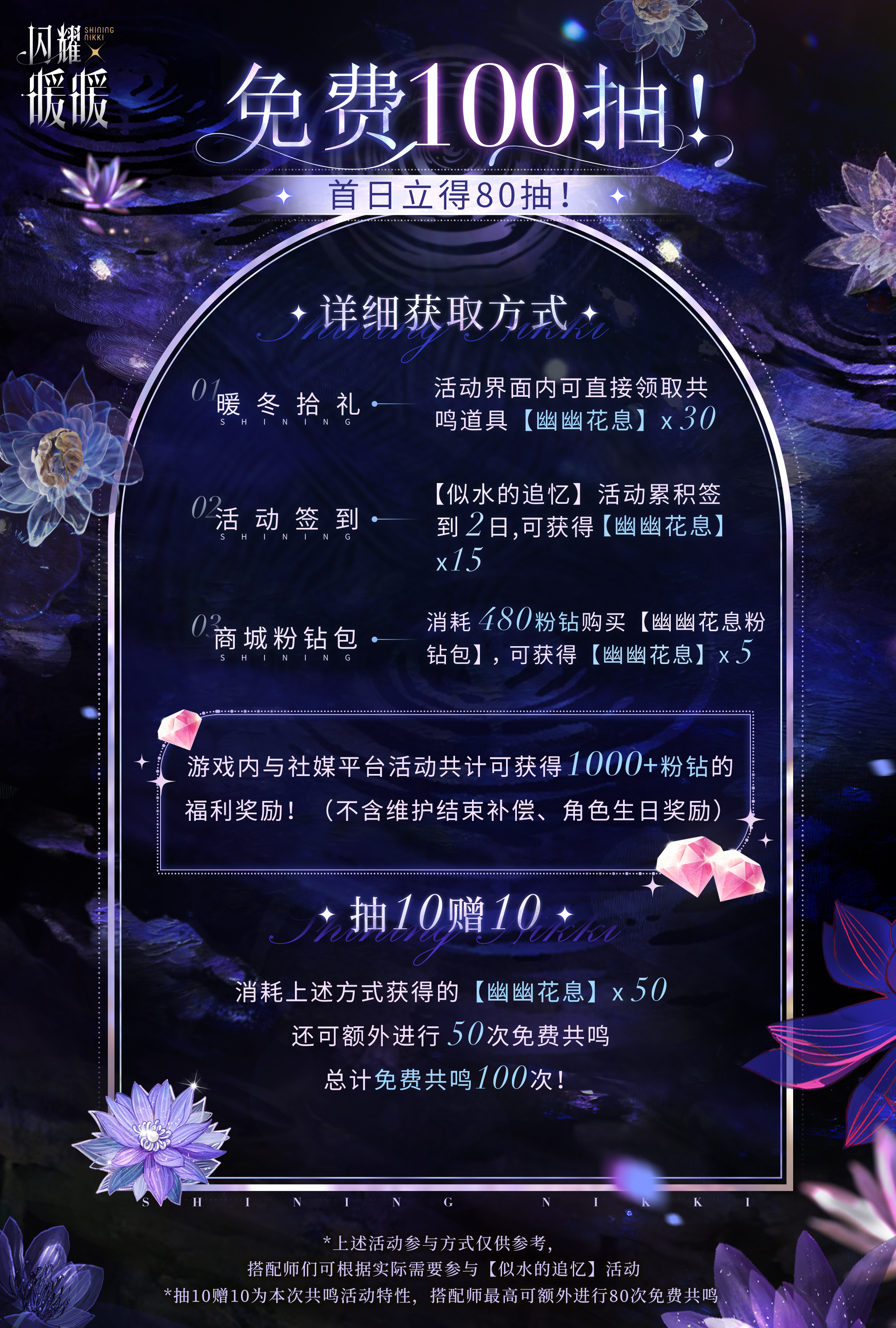 1.活动期间登录可领取海量福利,首日签到即可领取共鸣道具「幽幽花息」*10;