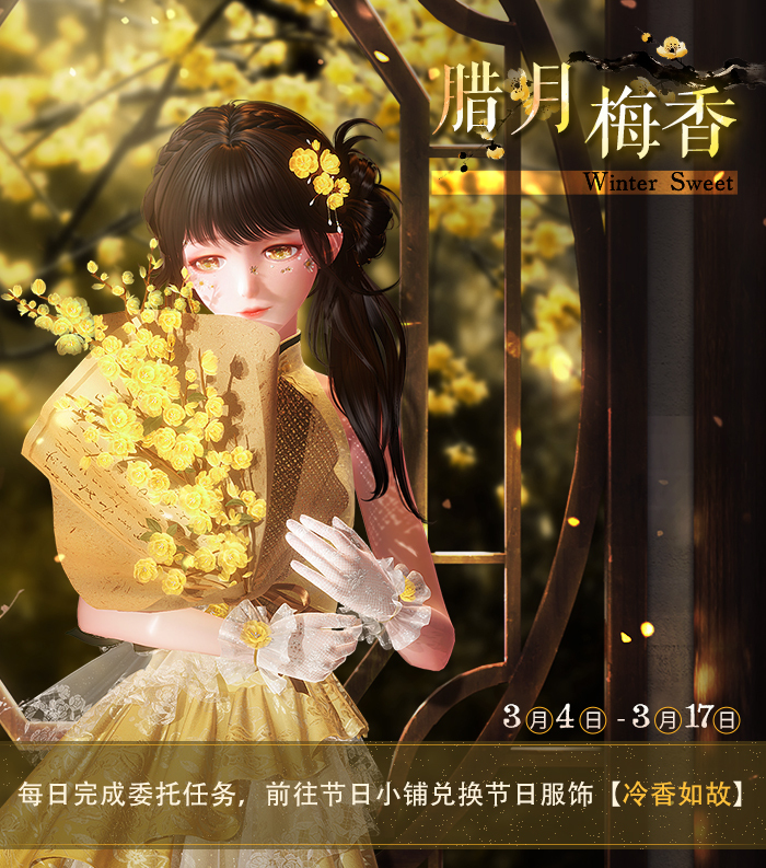 3月4日更新后,活动期间内,每日拜访设计师并完成委托任务,即可获得节庆之章,消耗节庆之章可兑换免费稀有服饰【冷香如故】!