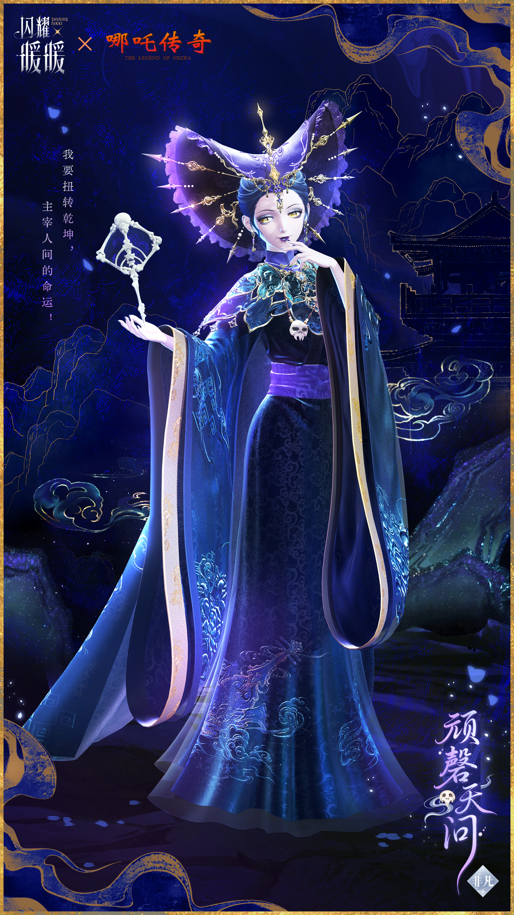 活动期间,可在活动界面购买18元【顽磬天问礼盒】,礼盒内包含非凡限定服饰【顽磬天问】、动态动作【魔石化极】、换装背景及同名贴纸背景【百骨洞穴】及贴纸【紫宸捧莲】【夜陨天穹】【璇紫宵金】。