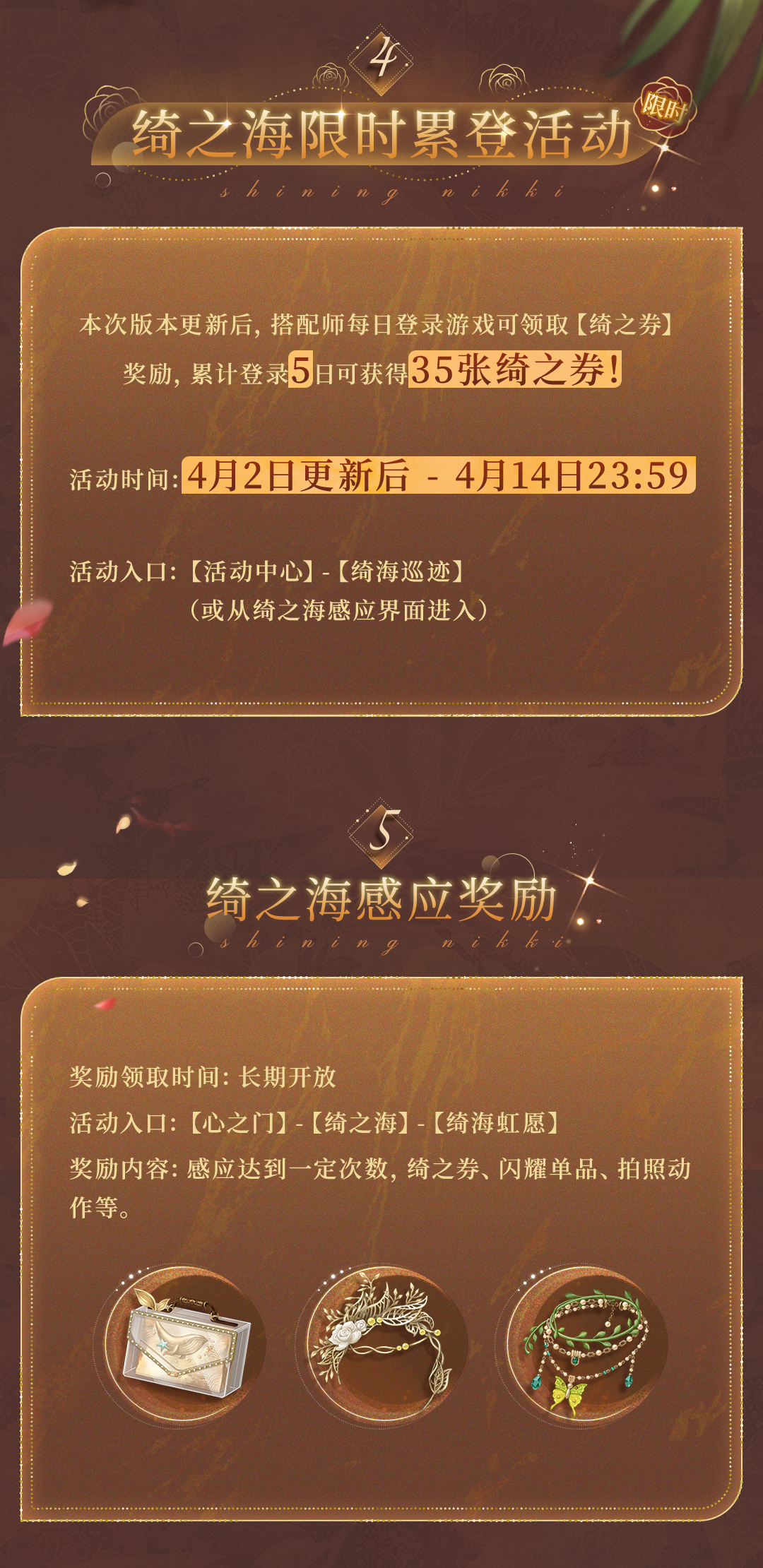 限时累登福利:版本更新后,累计登录5日即可领取35张「绮之券」!